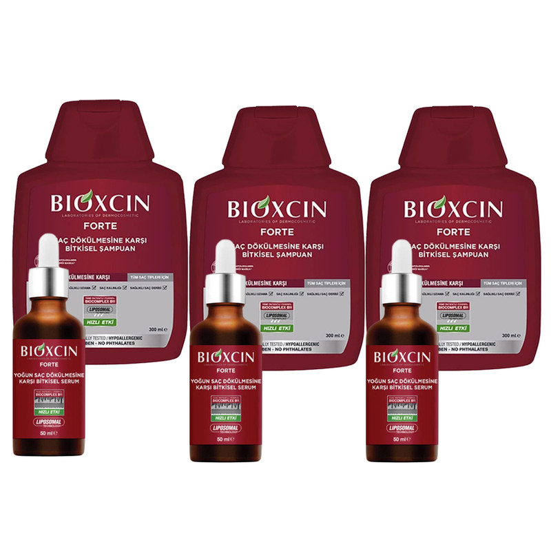 شامپو ضد ریزش مو بیوکسین مدل فورته حجم 300 میلی لیتر مجموعه 3 عددی به همراه سرم ضد ریزش مو بیوکسین مدل فورته حجم 50 میلی لیتر مجموعه 3 عددی
