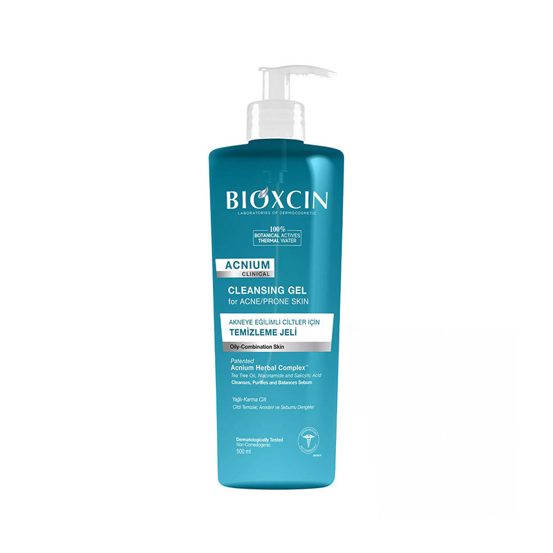 ژل شستوشوی صورت بیوکسین مدل Acnium مناسب برای پوست چرب و مختلط حجم 500 میلیلیتر