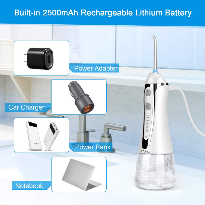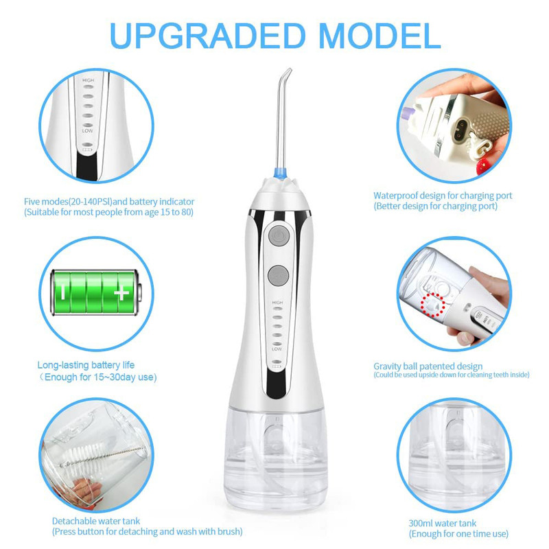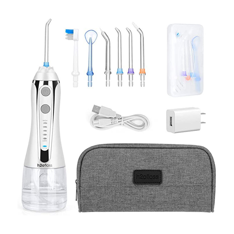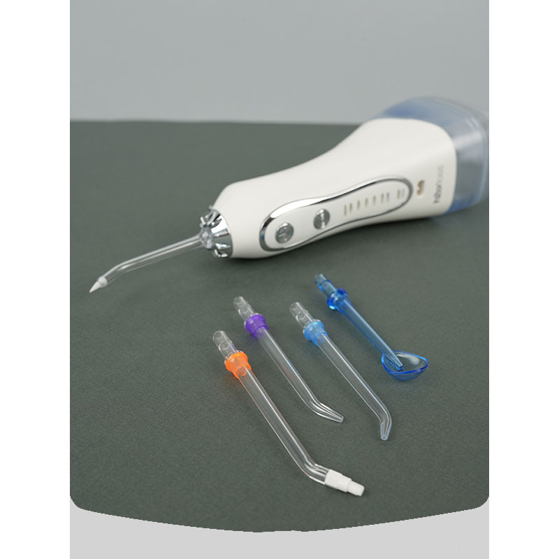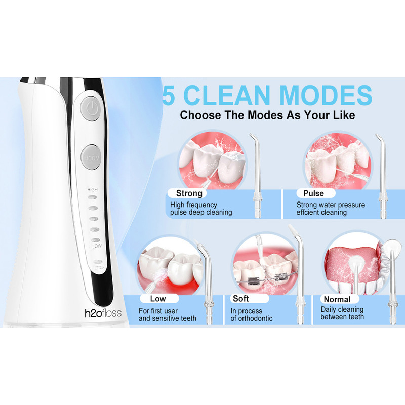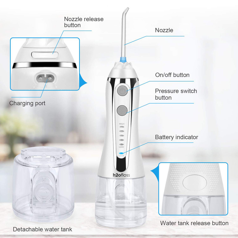 داشتن دندانهای سالم و سفید از مهمترین عوامل در زیبایی افراد است و میتوان با یکبار هزینه صحیح، این سلامتی و زیبایی را سال ها همراه داشت. واتر جت دندان خانگی دستگاهی است که با پاشیدن آب با فشار به دندانها و لثهها، جرمهای باقی مانده و باکتریهای مضری که در اعماق دندانها و لثهها مخفی شده اند و حتی با مسواک از بین نمیروند را از دهان خارج مینماید. دستگاه واتر جت دندان خانگی علاوه بر پاک کردن فواصل بین دندانها، میتواند به کاهش التهاب و خونریزی لثه، جرم گیری بهتر ، تمییز کردن بریجها و دندانهای ایمپلنت و روکش شده کمک نماید. با وجود اینکه ایمپلنتها ازمواد ضد پوسیدگی تولید میشوند اما واتر جت دندان میتواند با از بین بردن جرمهای باقی مانده در اطراف ایمپلنت از عفونت و التهاب لثه و در نتیجه سست شدن ایمپلنت جلوگیری کند که این امر در دوام و ماندگاری ایمپلنت ها تاثیر مشهودی دارد.این واترجت با داشتن سری ارتودنسی میتواند تمام جرم های اطراف سیم ارتودنسی را هم رفع کند. پس می توان نتیجه گرفت که با خرید این دستگاه در واقع چند دستگاه راه همزمان تهیه کردهاید. دستگاه واتر جت h2oflossمدل HF-6 دارای ابعاد متناسب برای استفاده خانگی است که با داشتن سریهای متعدد امکانات فوق العاده ای فراهم نموده است.این مدل دارای مخزنی به حجم 300 میلی لیتر است که این مقدار برای استفاده خانگی مطلوب است.. این مدل با امکان تنظیم فشار آب در 5 سطح قدرت برای پاک کردن پلاک ها و جرمهای اطراف دندان از بهترین دستگاه های واتر جت دندان خانگی بوده که افراد میتوانند هر روز استفاده نمایند.