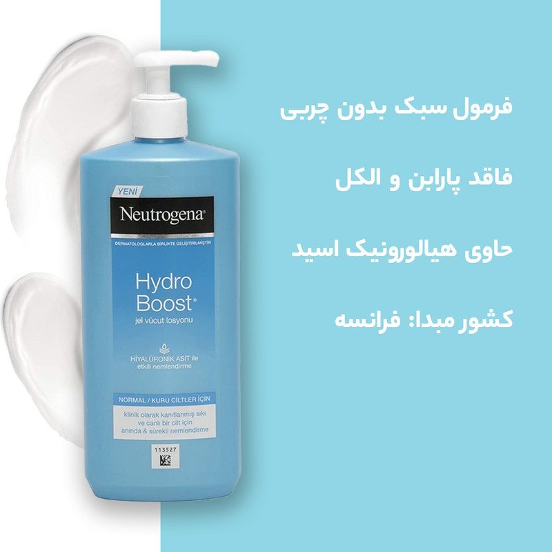 لوسیون ژلی دست و بدن نوتروژینا مدل Hydro boost غنی شده با اسید هیالورونیک اسید و گلیسیرین می باشد که باعث آبرسانی به پوست شده و می تواند رطوبت مورد نیاز سلول های پوستی را تامین نماید. به خاطر همین است که اگر از این محصول به صورت مداوم استفاده نمایید، دیگر نیاز نیست که نگران خشکی پوست خود باشید. همچنین این محصول دارای مواد معدنی می باشد که باعث کلاژن سازی پوست شود.
