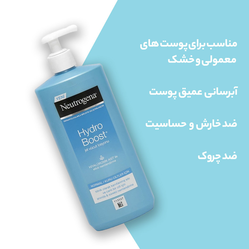 البته عوامل دیگری نیز می تواند در خشکی پوست دخیل باشد که نور آفتاب یکی از این دلایل می باشد. اشعه های نور خورشید به دلیل تاثیری که روی غدد تولید چربی دارد می تواند در نرمی و لطافت پوست تاثیر گذار باشند. به همین دلیل نیاز است که از محصولات مراقبت از پوست استفاده نمایید تا این خشکی پوست را جبران نماید.بافت ژل کرمی که این محصول دارد، باعث خواهد شد تا به سرعت جذب پوست شده و از طرفی نیز احساس سنگینی روی پوست احساس نخواهید کرد. لوسیون ژلی دست و بدن نوتروژینا مدل Hydro boost به سلول های پوستی کمک خواهند کرد تا رطوبت مورد نیاز خود را دوباره تامین کرده و به دلیل اینکه مانع از خروج این ترکیبات از سلول ها می باشد، تا مدت زمان زیادی از خشکی پوست شما جلوگیری خواهد کرد.