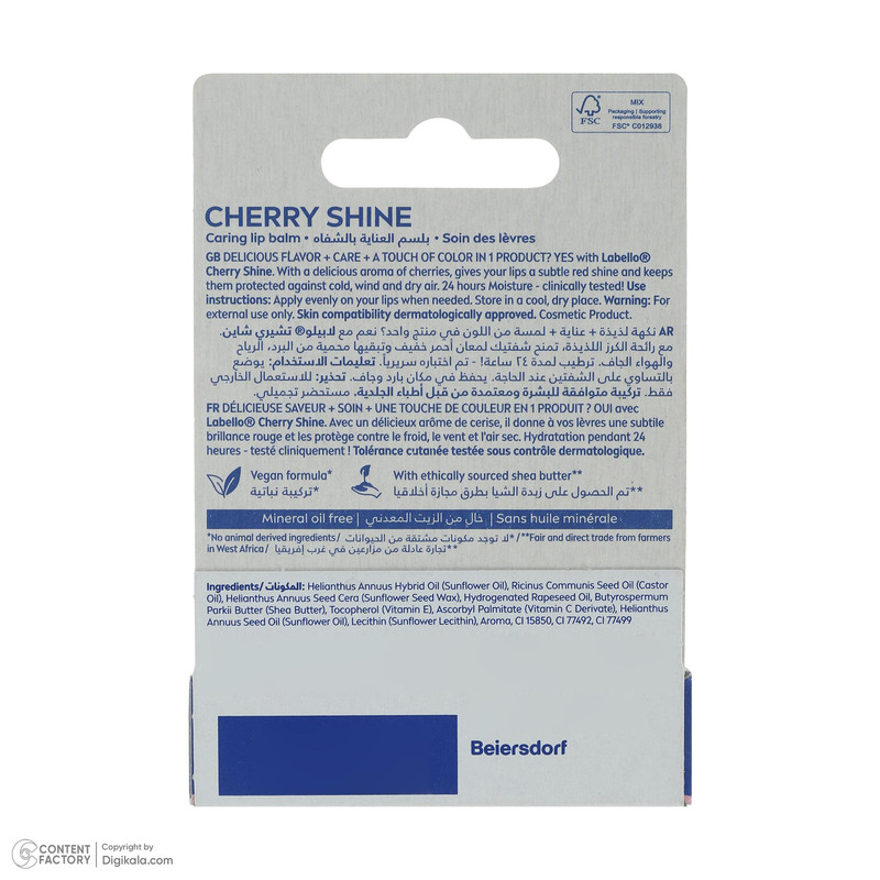 دستهبندی: بالم لبنوع نرمکننده و بالم لب: بالم لبعصارههای موجود: گیلاس , شیباترسازگار با پوست لب: معمولی , حساس , خشکمناسب برای: بانوانرنگ : قرمزنوع محفظه : ماتیکیخواص محصول : مرطوبکننده , آبرسانشکل محصول : جامدترکیبات : روغن معدنیصادرکننده مجوز : سازمان غذا و داروویتامینها و مواد معدنی موجود : E , Cویژگیهای سازگار با محیط زیست : وگاننمایش بیشتر