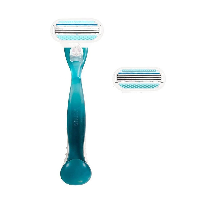 خودتراش ژیلت مدل Venus Smooth از سه تیغه برای بالا بردن سطح کیفیت اصلاح بهره میبرد و مناسب خانمهاست. این خودتراش شامل یک دسته ی خودتراش و2 یدک (کارتریج) است. این خودتراش از ژیلت دارای دستهای با طراحی کاملا ارگونومیک است که کنترل آن را در دست آسان میسازد؛ همچنین دقت بیشتری در موزدایی و جلوگیری از بریدگی پوست را سبب میشود. پس از اصلاح بدن با ونوس اسموت ، نرمی و لطافت پوست به خوبی حس میشود. وجود نوار روان کننده برای سر خوردن تیغ با لمس روغن های گیاهی در این محصول ، کمک بسیار زیادی به روان شدن حرکت تیغ و بهتر انجام شدن موزدایی میکند. این نوار ژل حاوی روغنهای معدنی برای جلوگیری از آسیب به پوست و خشک شدن آن است. با استفاده از این خودتراش به راحتی میتوان روزانه بدن را اصلاح کرده و از بهداشت روزانه خود لذت برید و البته دسته این خودتراش با 30٪ پلاستیک بازیافتی ساخته شده است .
