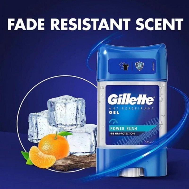 مام ژله ای ژیلت حاوی دانه های آبی ، از طریق نابود کردن باکتری هایی که مسئول بوی بدن هستند عمل می کند.مام ژله ای ژیلت، با ماندگاری 48 ساعته خود احساس راحتی را برای شما به ارمغان خواهد آورد. به عنوان یک امتیاز دیگر، این ژل پوست زیر بغل را لطیف کرده و موجب کاهش احساس سوزش و آماس(التهاب) پوست پس از تراشیدن مو می شود و برتری دیگر این محصول بر سایر محصولات مشایه ، عدم استفاده از آلومینیوم در ترکیب آن است که ماده ای سمی و خطرناک میباشد این دئودرانت از برند ژیلت با فرمولاسیون ویژه خود با از بین بردن باکتری های سطح پوست می باشد و هیچ لکه ایی روی لباس ایجاد نمی کند. این مام ضد تعریق دارای رایحه طراوت بخش و دارای خاصیت رطوبت رسانی بالا به پوست می باشد.
