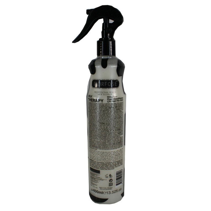 دوفاز مو مورفس با خاصیت شیر درمانی حجم 400میل Morfose است. دوفاز مو مورفس با خاصیت شیر درمانی حجم 400میل یک محصول تقویت کننده مو در دو نوع ترمیم کننده و اسپری مو دوفاز نرم کننده در بازار وجود دارد. اسپری مو دوفاز از موادی تشکیل شده است که مانند یک باند ظریف موهای آسیب دیده را در برمی گیرد و باعث ترمیم آن می شود.