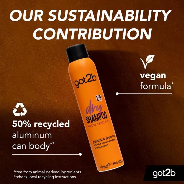 شامپو خشک گات تو بی مدل اکسترا تکسچر Extra Texture از شادابی فوری و طولانی مدت برای موهای خود بدون شستشو لذت ببرید. استفاده از شامپو خشک در هر مکانی آسان است. خط مو را برای داشتن ظاهری تمیز و سالم تازه می کند و همچنین با رایحه انرژی بخش مرکبات که ساعت ها ماندگاری دارد باعث لذت می شود. با مصرف این شامپو خشک ریشه موهای چرب را خنثی میکنید و در نتیجه زمان را تا شستشوی بعدی مو افزایش میدهید. این محصول پس از برس کشیدن هیچ اثر قابل مشاهده ای در موها باقی نمی گذارد و می تواند در هر مکانی استفاده شود.