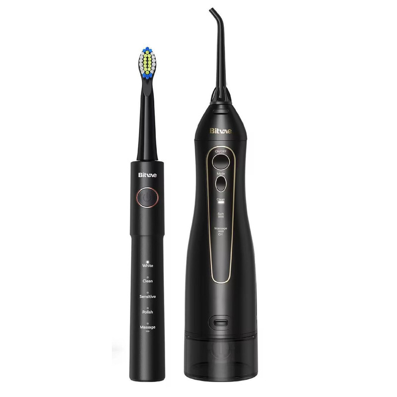 داشتن دندانهای سالم و سفید از مهمترین عوامل در زیبایی افراد است و میتوان با یکبار هزینه صحیح، این سلامتی و زیبایی را سال ها همراه داشت. واتر جت دندان خانگی دستگاهی است که با پاشیدن آب با فشار به دندانها و لثهها، جرمهای باقی مانده و باکتریهای مضری که در اعماق دندانها و لثهها مخفی شده اند و حتی با مسواک از بین نمیروند را از دهان خارج مینماید. دستگاه واتر جت دندان خانگی علاوه بر پاک کردن فواصل بین دندانها، میتواند به کاهش التهاب و خونریزی لثه، جرم گیری بهتر ، تمییز کردن بریجها و دندانهای ایمپلنت و روکش شده کمک نماید. با وجود اینکه ایمپلنتها ازمواد ضد پوسیدگی تولید میشوند اما واتر جت دندان میتواند با از بین بردن جرمهای باقی مانده در اطراف ایمپلنت از عفونت و التهاب لثه و در نتیجه سست شدن ایمپلنت جلوگیری کند که این امر در دوام و ماندگاری ایمپلنت ها تاثیر مشهودی دارد. پک 507 + 5020E بیتوی شامل یک عدد واترجت و مسواک بوده که تمام چیزی که شما برای تمیزی و سلامت دندان های خود احتیاج دارید را فراهم کرده است. واترجت بیتوی دارای مخزنی به حجم 300 میلی لیتر میباشد که در کنار حجم مناسب قابلیت جدا شدن برای پر کردن مجدد و شست و شوی راحت تر را نیز داراست. تایمر هوشمند و قابلیت صدای کم از دیگر ویژگی های این محصول است که این دستگاه را به یک ماساژور عالی برای لثه های شما نیز تبدیل کرده است. این مدل با دارا بودن امکان تنظیم فشار آب در 3 حالت مختلف به صورت clean ، soft و massage و برای پاک کردن پلاکتها و جرمهای اطراف دندان از بهترین دستگاه های واتر جت دندان خانگی بوده که افراد میتوانند هر روز استفاده نمایند. مسواک این پک نیز دارای 5 حالت مختلف massage , polish , sensitive , clean و white میباشد که با نحوه مختلف لرزش سری میتواند تجربه خوبی را برای شما فراهم سازد.