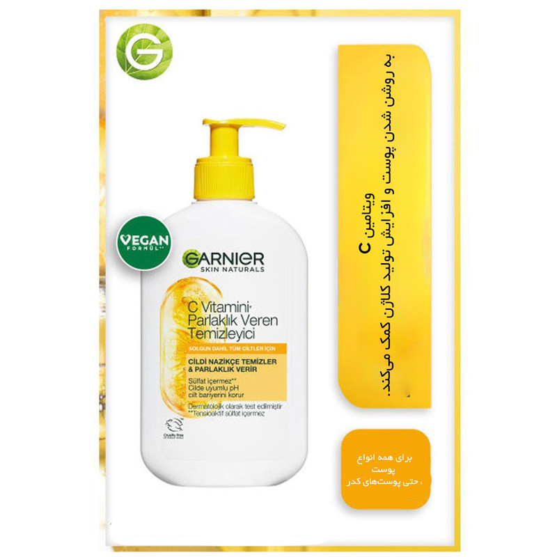 برای اینکه بتوانید آلودگی ها را به خوبی از پوست خود پاکسازی نمایید، استفاده از محصولاتی همانند ژل شستشوی صورت ویتامین سی گارنیر می تواند برای پوست شما بسیار کمک کننده باشد.این محصول عالی علاوه بر اینکه می تواند آلودگی ها و چربی ها را به خوبی از روی پوست پاکسازی نماید، به دلیل حاوی بودن عصاره طبیعی ویتامین سی در ساختار محصول، می تواند به درمان جوش های روی پوستی کمک بسیاری نماید و از طرفی نیز به جلوگیری از آسیب های اشعات مضر نور آفتاب نیز به خوبی جلوگیری نماید.با استفاده مداوم از ژل شستشوی صورت ویتامین سی گارنیر شما قادر خواهید بود تا شفافیت پوست خود را افزایش داده و پوستی شاداب و درخشان داشته باشید و از مشکلات پوستی بسیاری نیز در امان بمانید. این محصول فاقد تست حیوانی و مواد مضر برای پوست می باشد که می توانید آن را با خیال راحت استفاده کرده و تاثیرات فوق العاده آن را بر روی پوست خود ببینید.