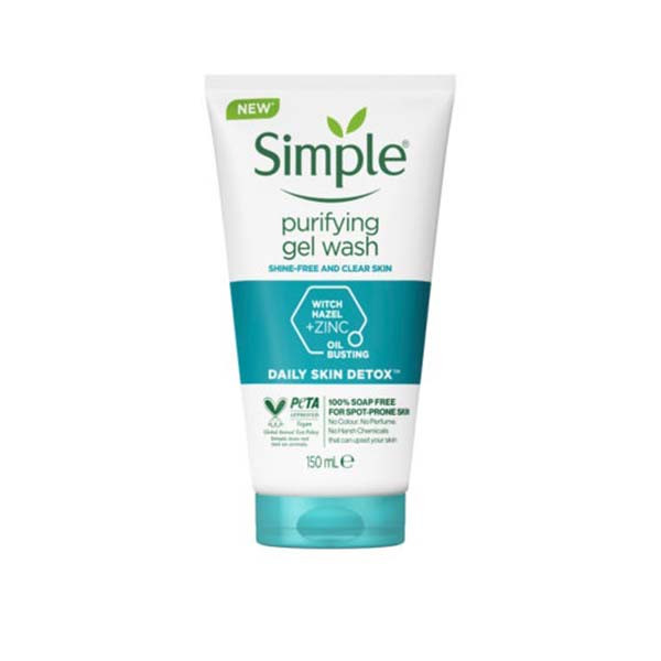 ژل شستشوی صورت سیمپل مدل Hazel + Zinc، پوست صورت را به صورت آشکار از آلودگی ها پاک می کند، آن را با نشاط کرده و آن را مات می کند. این محصول سرشار از ویتامین، پوست را سالم، نرم و تمیز می کند. این ژل حاوی عصاره ی فندوق وحشی و زینک است که پوست را سم زدایی می نماید و چربی اضافه پوست را از بین میبرد. تکنولوژی پرو-آمینو اسید، مقاومت طبیعی آمینو اسیدهای موجود در پوست را می افزاید و پوست را متعادل کرده و در برابر عوامل محیطی ایجاد کننده ی جوش، از پوست محافظت می کند. این محصول نیز مانند دیگر محصولات سیمپل، فاقد صابون، عطر و رنگ و مواد شیمیایی مضر برای پوست است. همچنین این محصول وگان است و تست حیوانی ندارد.